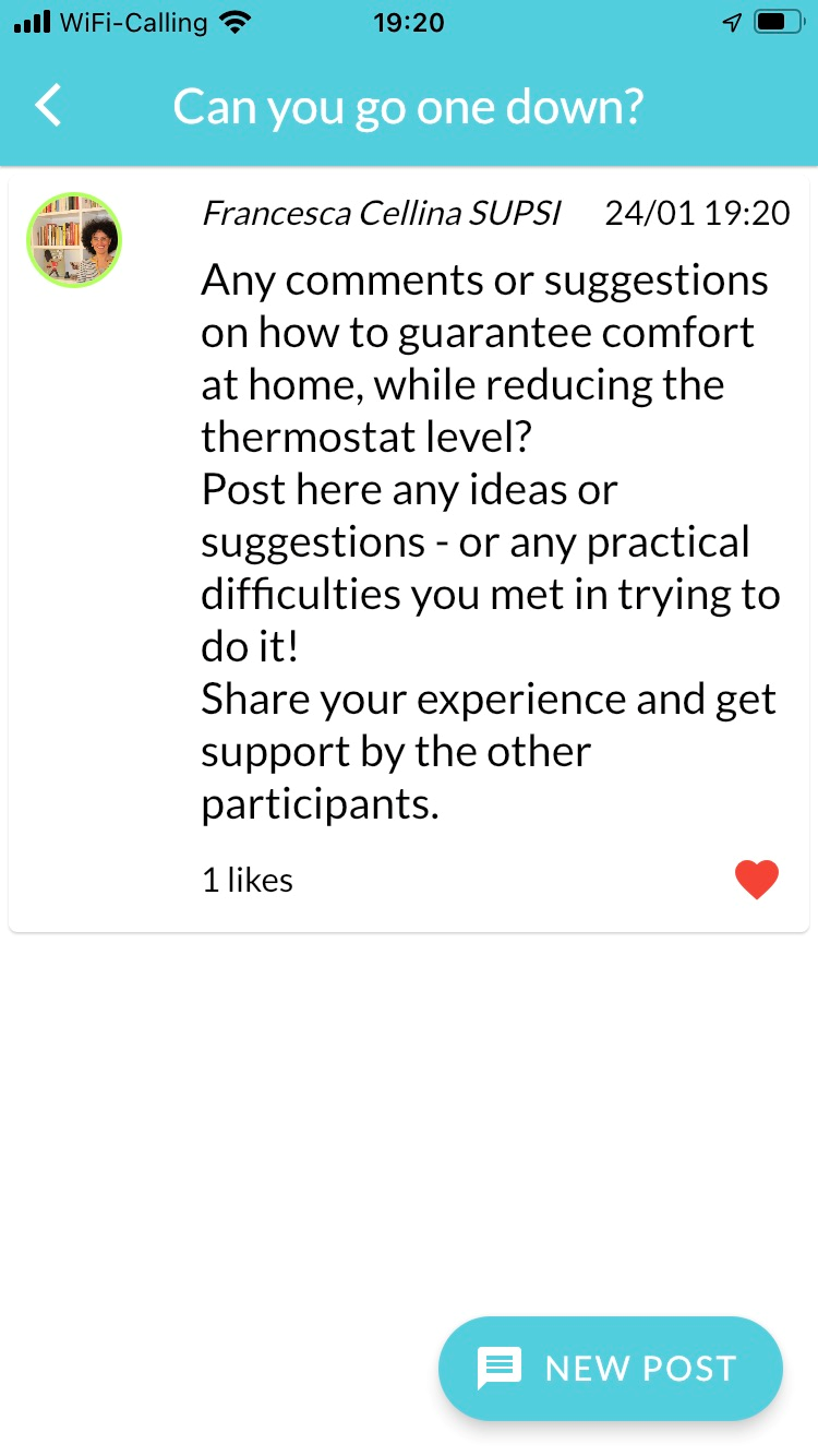 To complete the challenge, just share your experience on the PinboardFollow the suggestions provided by the app and shortly comment on how your daily practices changed. You can also add pictures, to show the other participants what you did.