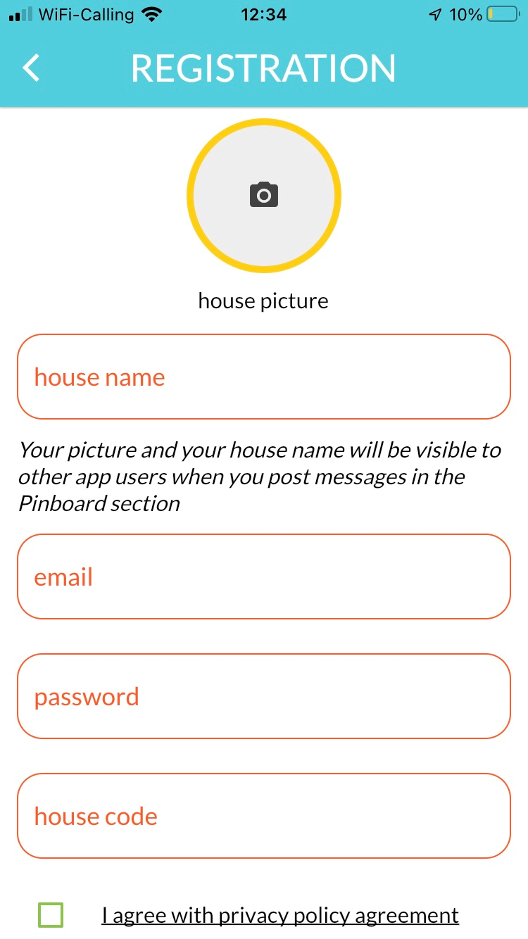 Your house name and picture will be shown to other app users. Other people in your house can also sign up using the same house code but with their email address.