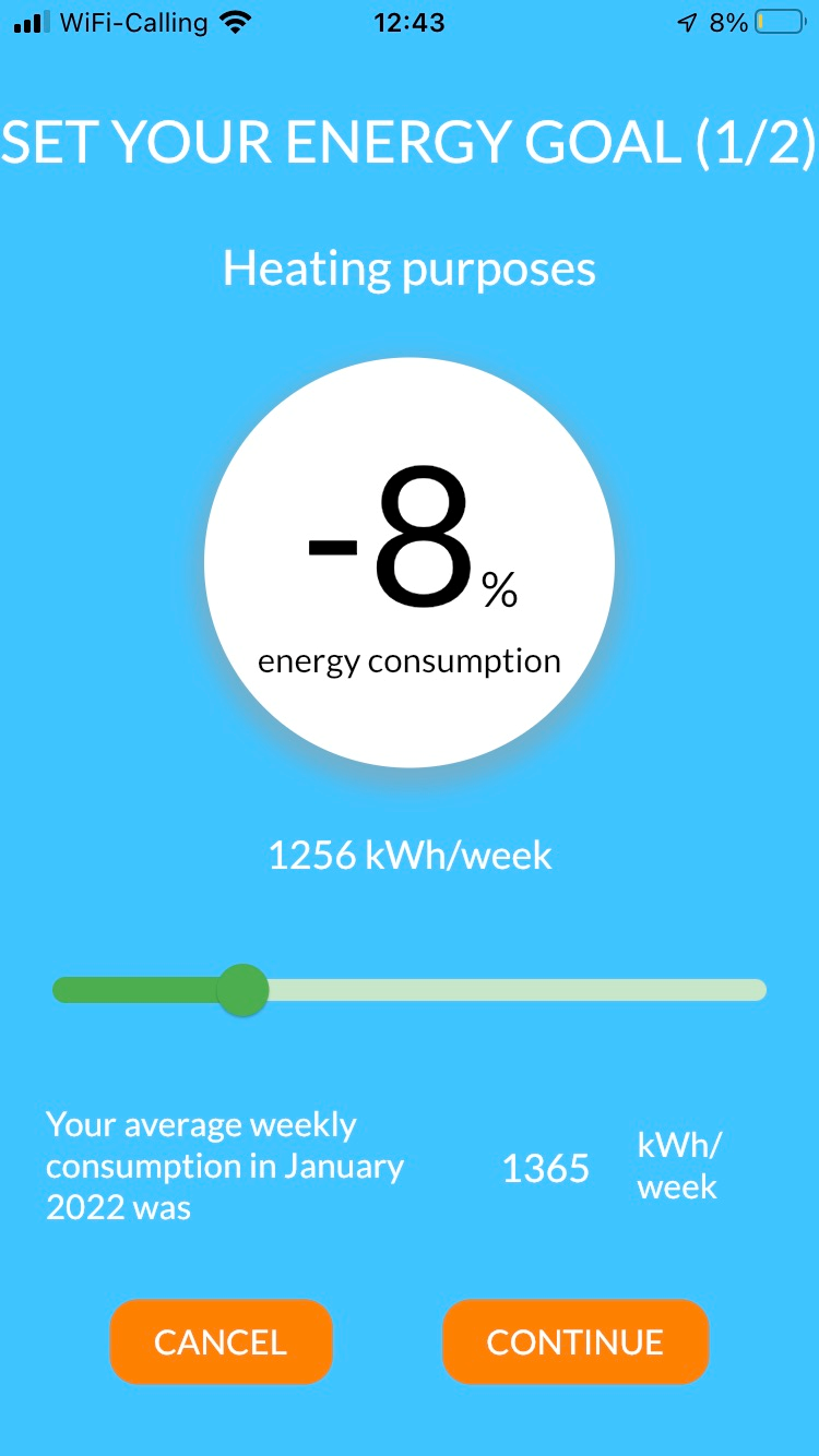How much energy do you want to save?Move the slider to set your energy consumption and savings goal, for both heating and  electrical appliances and devices (non-heating)  consumption.